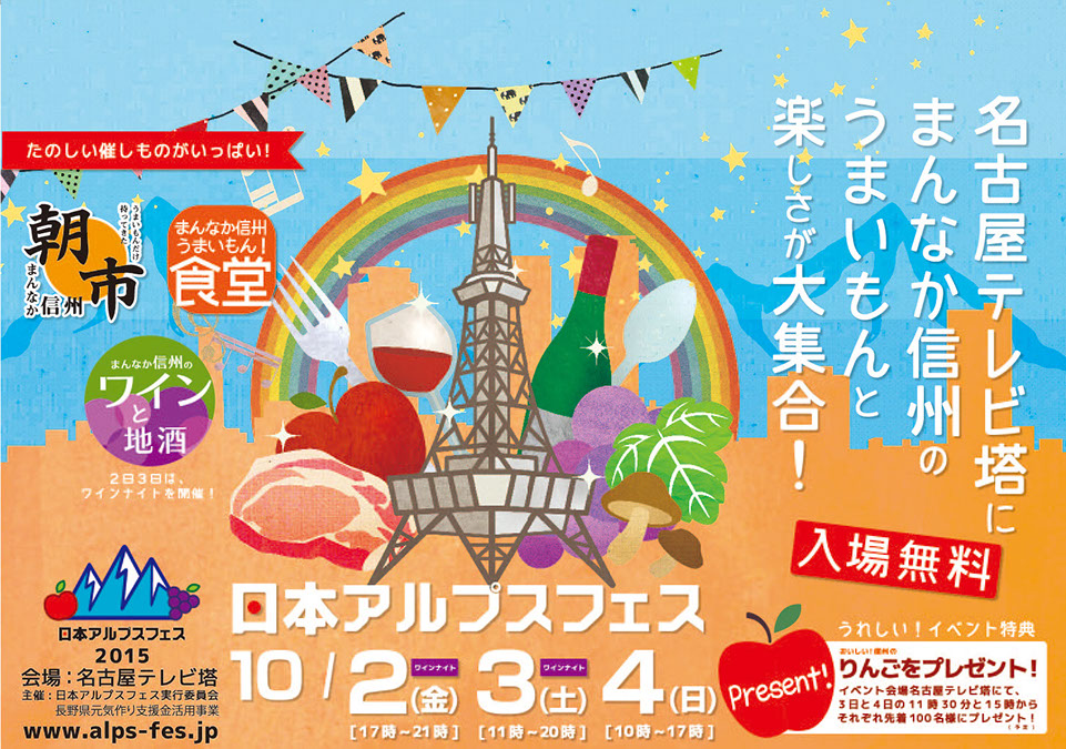 10月2日(金)~4日(日)に名古屋テレビ塔の下で開催されます「日本アルプスフェス2015」に、クアルトクラリネットアンサンブルのメンバー数人で演奏することになりました~。