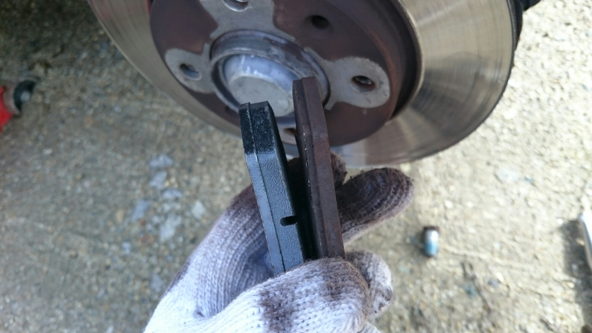 リアのブレーキパッド、やり方を忘れる&ピストンを戻すのに手間取り、思った以上に時間がかかった…。