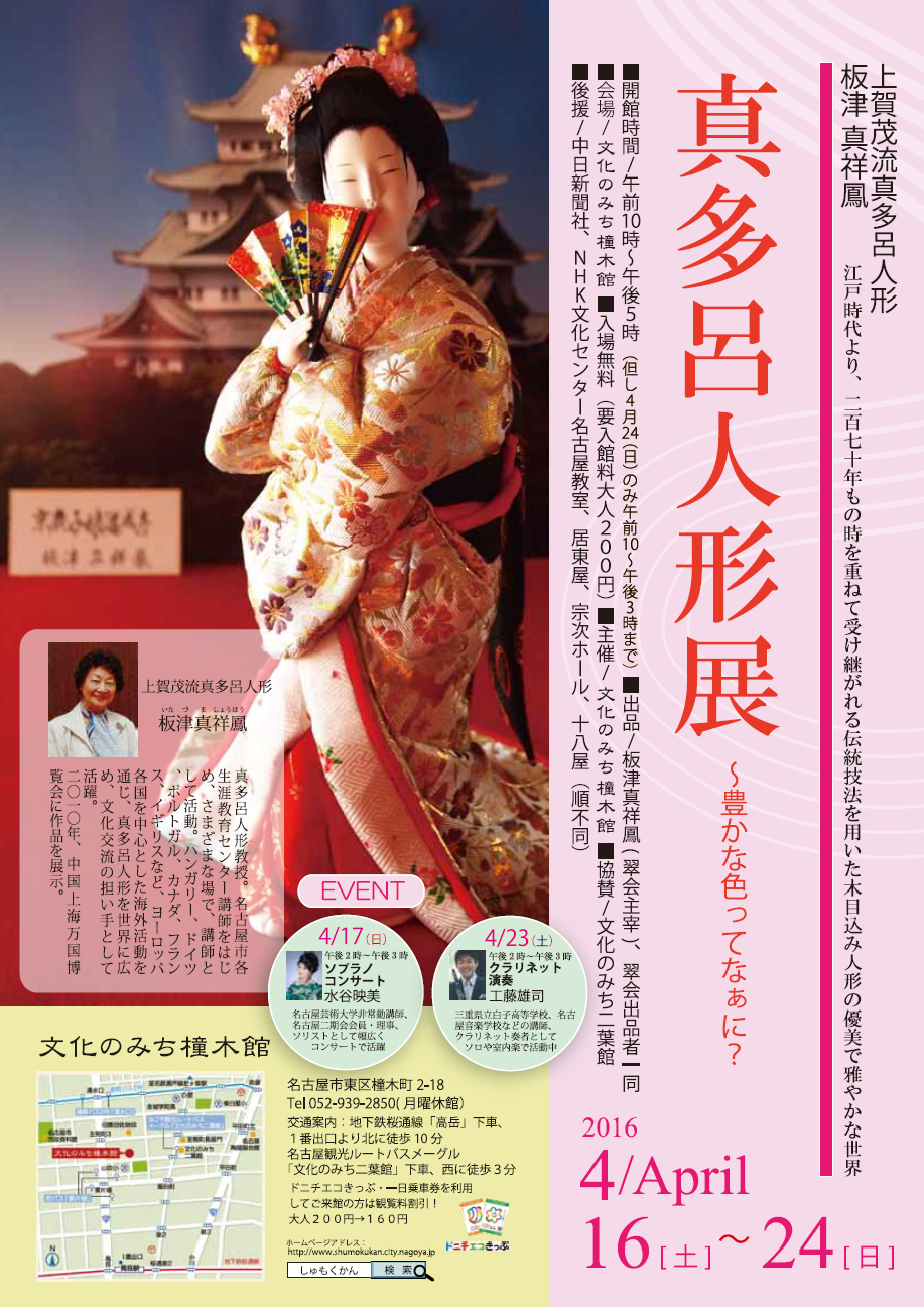 いつもお世話になっている板津さんから、「真多呂人形展」での演奏のお話をいただけました。
