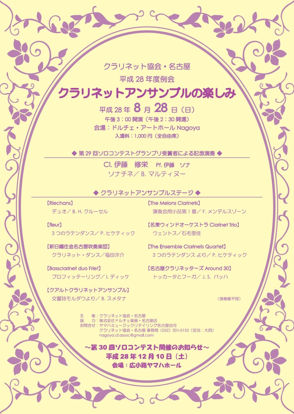 さて、今日は「クラリネット協会・名古屋」が主催している演奏会のご案内です。