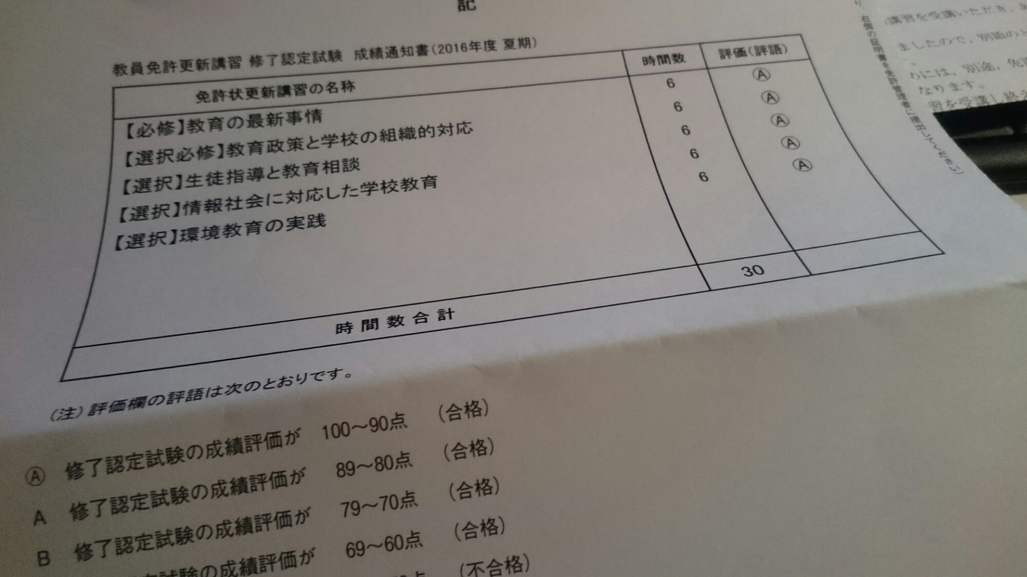 無事に各6時間、30時間分の履修が修了したことになったので、あとは教育委員会にその旨を報告するのみ。