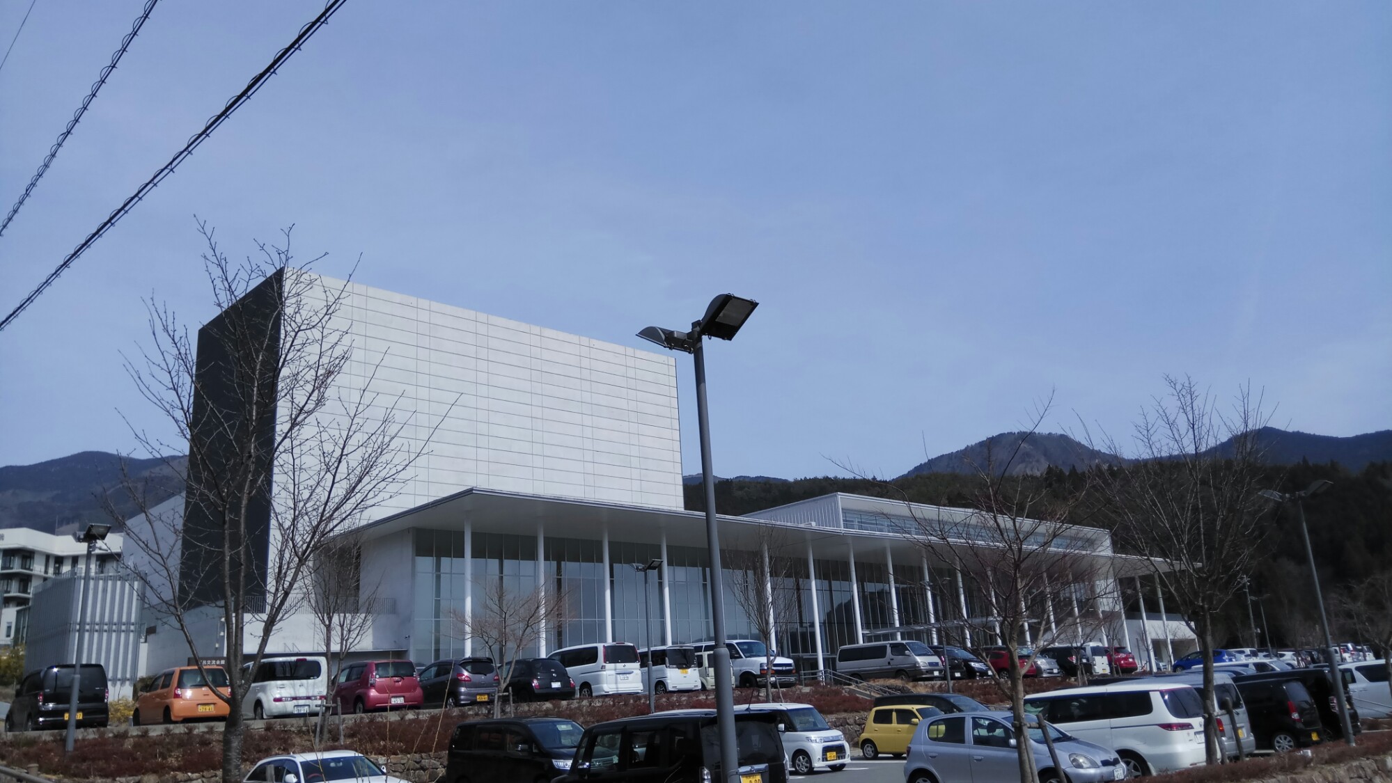 ↓ホールの下呂市交流会館。ホールの中の写真を撮り忘れていました…。木のぬくもりのある素晴らしいホールです(^^)