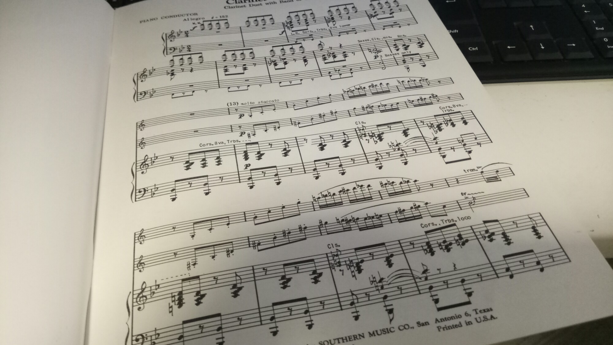 とりあえずバスクラ4重奏のための曲は先週完成し、あとはデュオと伴奏の曲、2部のオープニング、アンコールの4曲ですね。