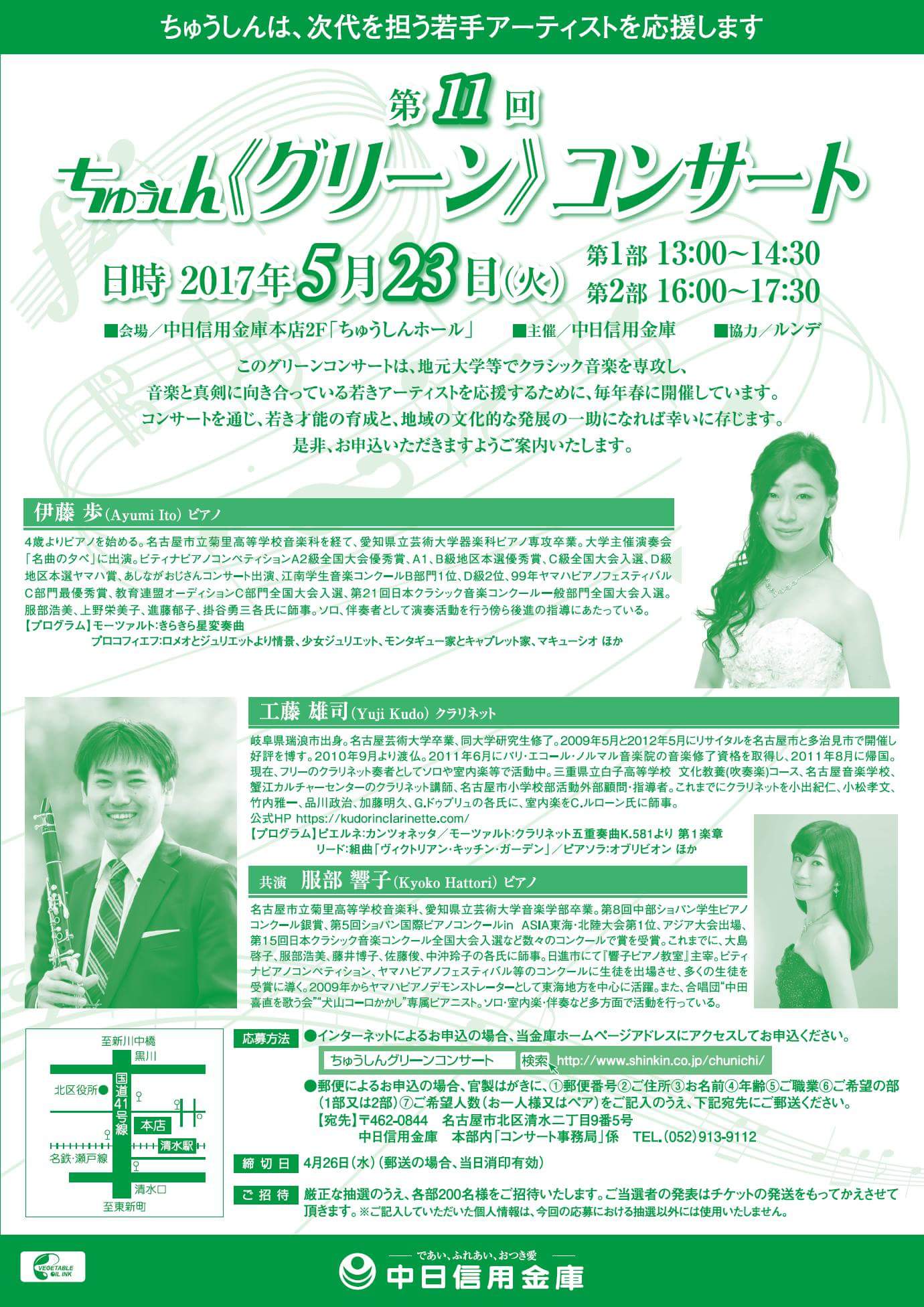 5月23日(火)に「第11回 ちゅうしん«グリーン»コンサートに出演してきます!