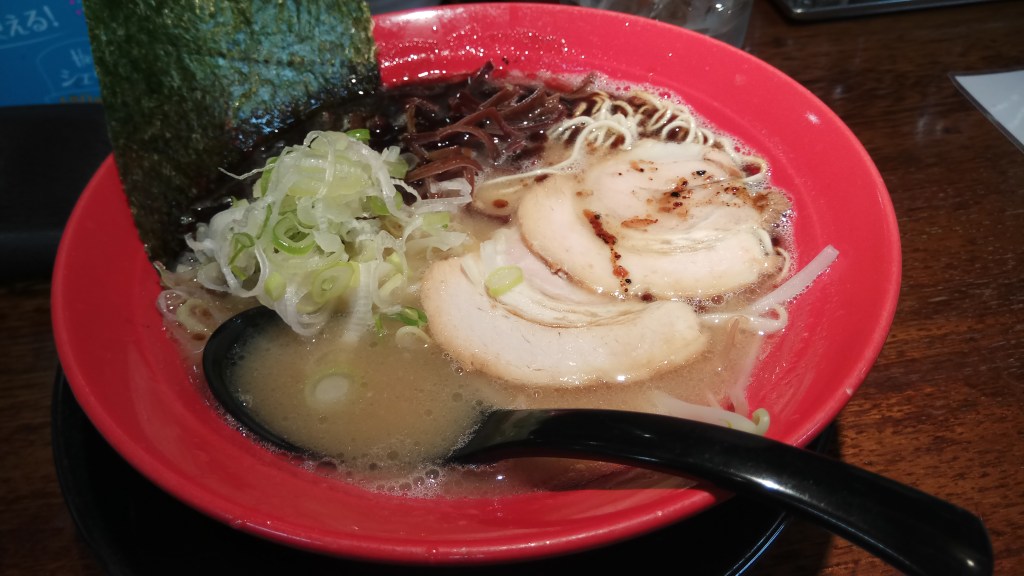 ↓帰りはとんこつラーメンを食べて帰りました。名前は忘れましたが、たまに食べるとおいしいお店。