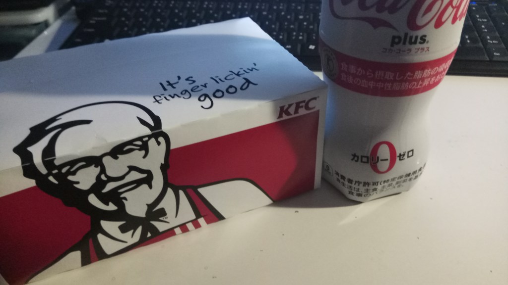 ↓ハイカロリーな食べ物が食べたくてKFCを買って帰りました。脂肪の吸収を抑えるコーラは必須。
