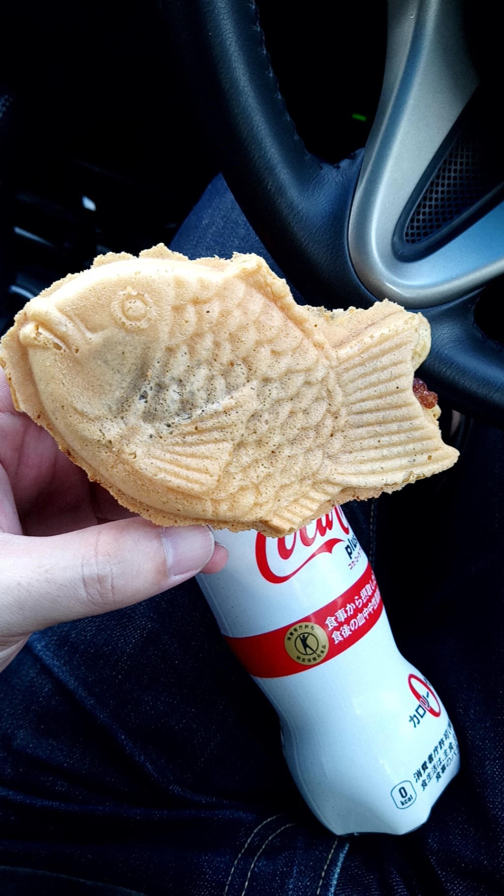 ↓帰りにホームセンターに寄って買ったたい焼きとトクホのコーラ。うーん、ここのたい焼きは砂糖多めで甘すぎた…。残念。