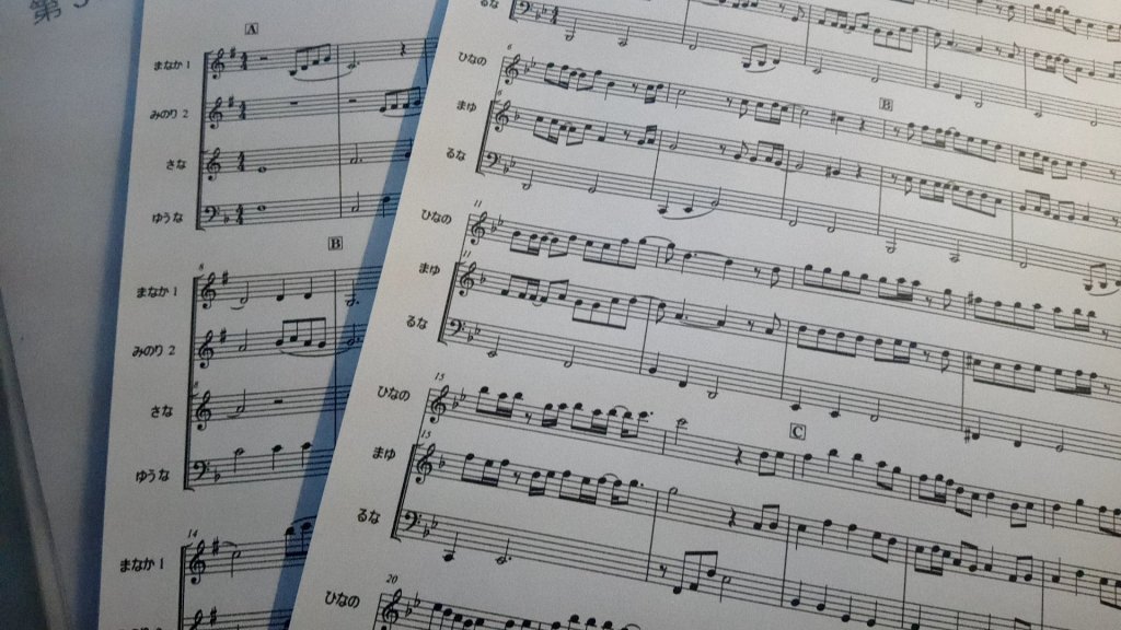 校内の発表会で楽器紹介をするようで、その楽譜を作って配りました。