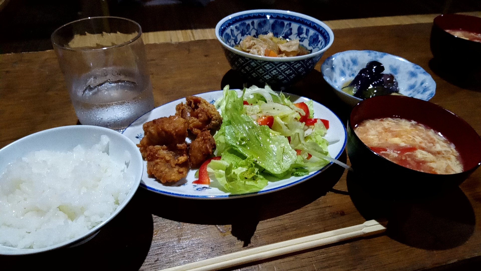 ↓先生の奥さんの手作りの晩ご飯。手の込んだ料理でおいしかった!