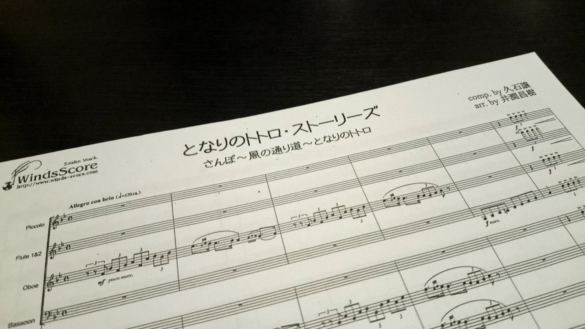 楽譜を配ったのはずいぶん前ですが、手前の本番の曲を仕上げるために放置していた「となりのトトロ・ストーリーズ」を着手。
