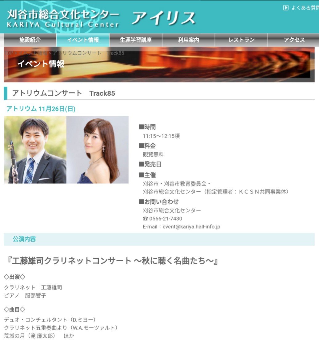 【出演】クラリネット:工藤雄司、ピアノ:服部響子