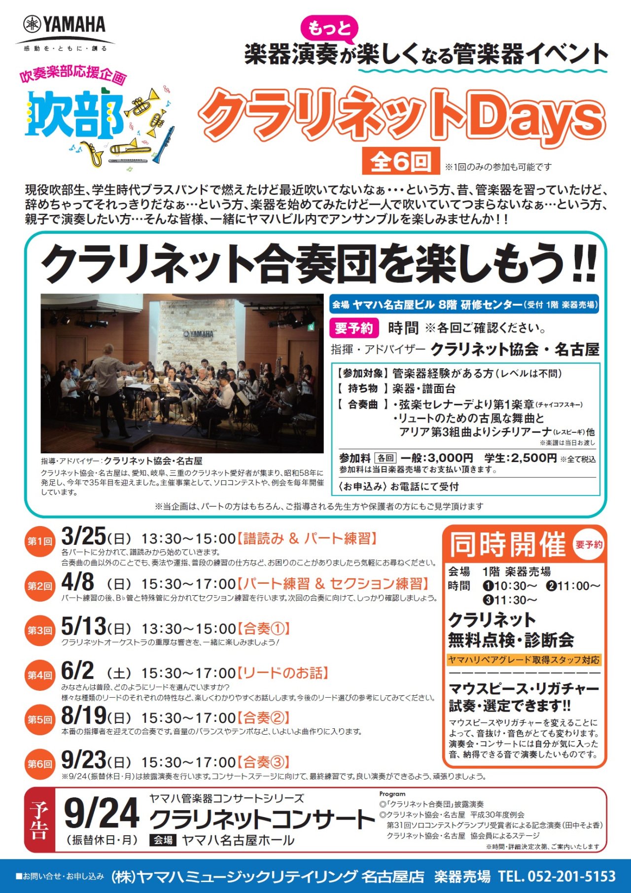 先の話になりますが、9/24(月・祝)にヤマハ名古屋店が主催するコンサートに、クラリネット協会・名古屋が演奏と一般の方のステージのサポートで参加する運びとなりました。