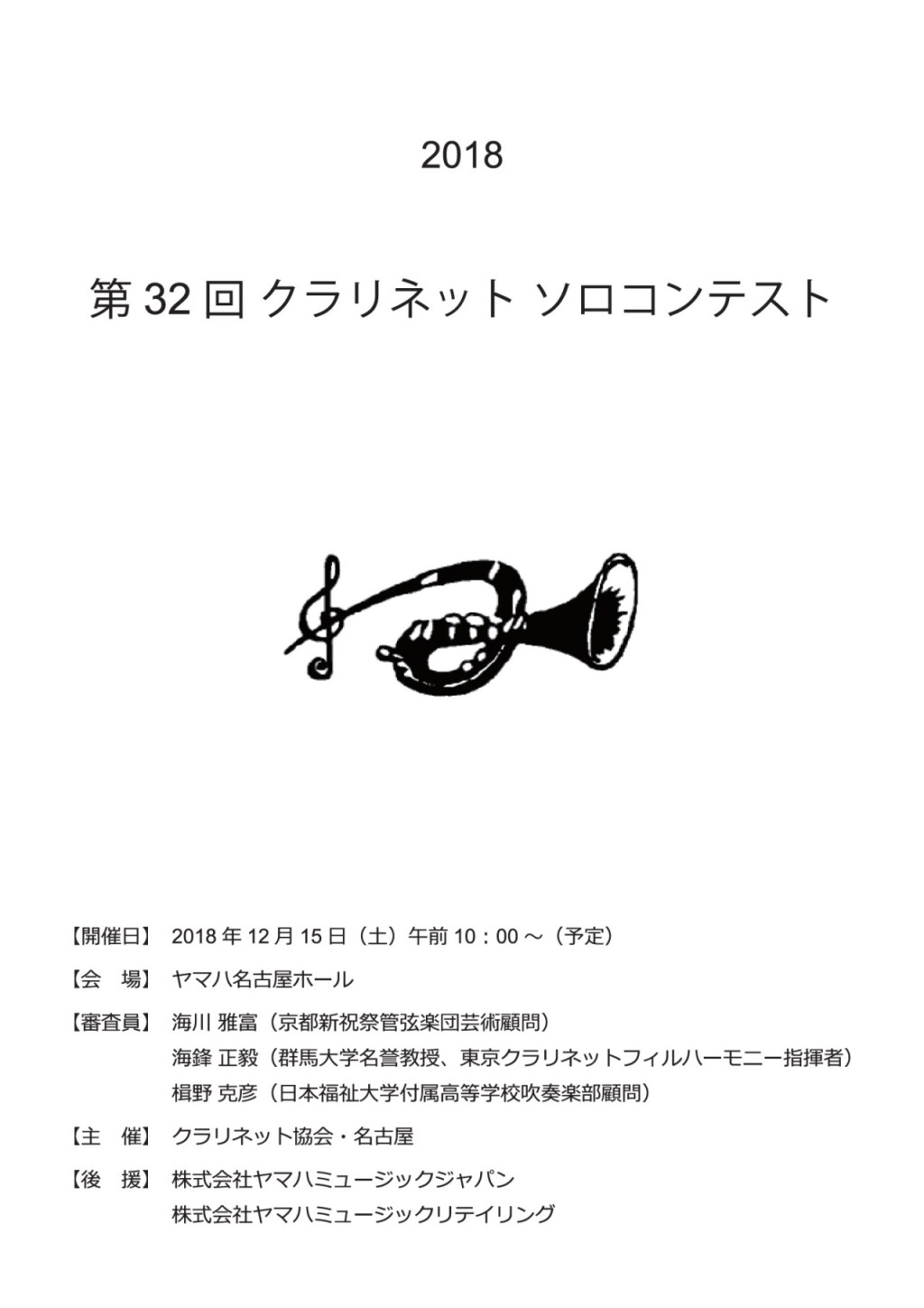 昨年から理事になりました「クラリネット協会・名古屋」が主催する、「第32回 クラリネットソロ・アンサンブルコンテスト」を、12月15日(土)に伏見のヤマハ名古屋ホールで開催します。