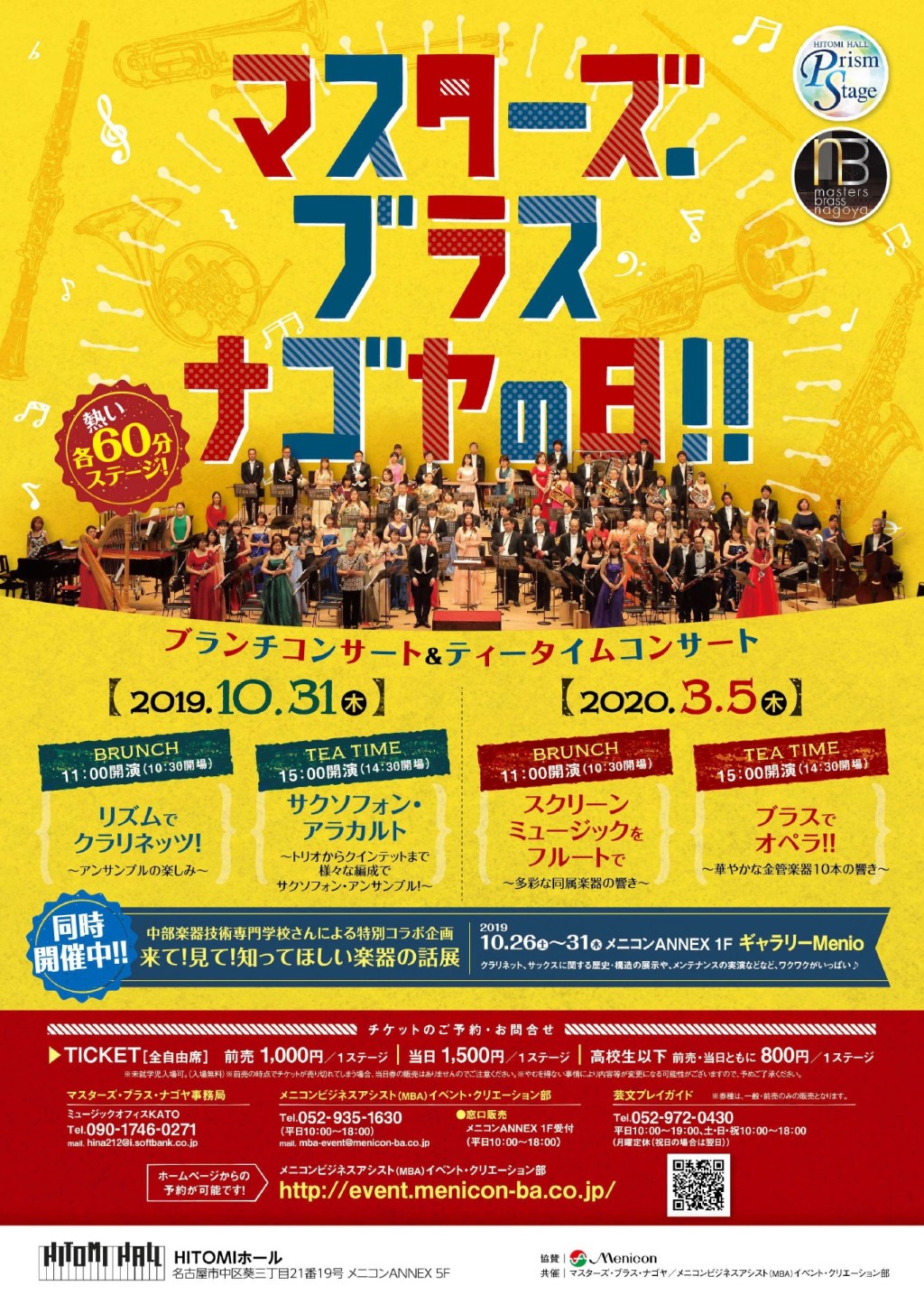 昨年に引き続き、10/31(木)にマスターズ・ブラス・ナゴヤのクラリネットパートのメンバーでアンサンブルの演奏をします!