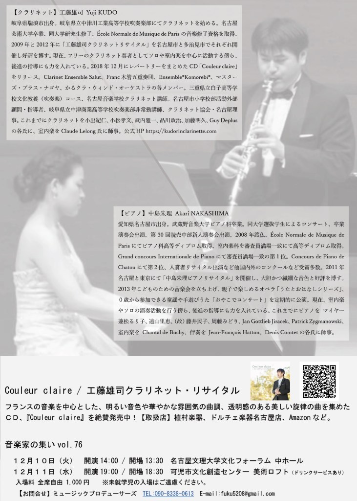 昨年と同じく、「音楽家の集い」に出演することと、自主企画としてHITOMIホールでも演奏します。