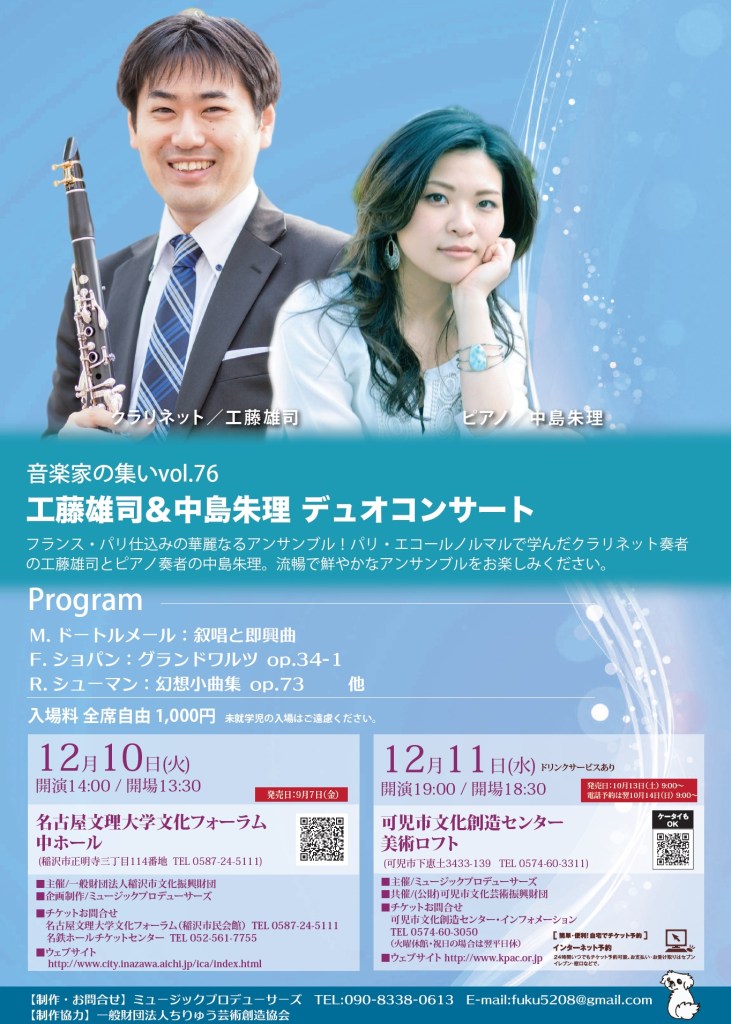 今年も朱理ちゃんとデュオコンサートを開催します!