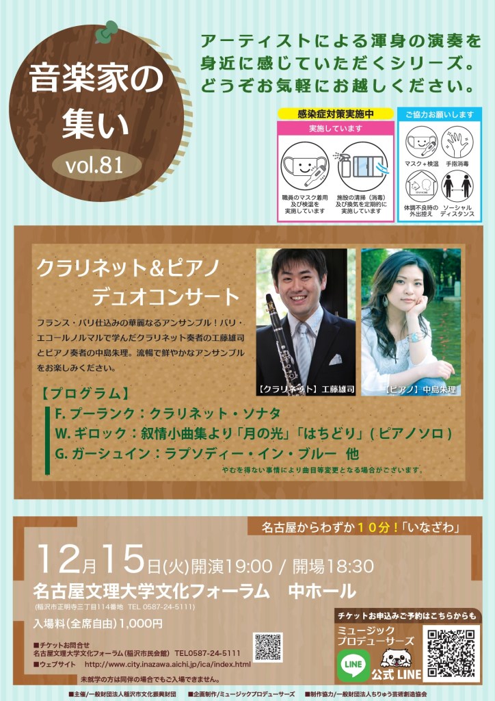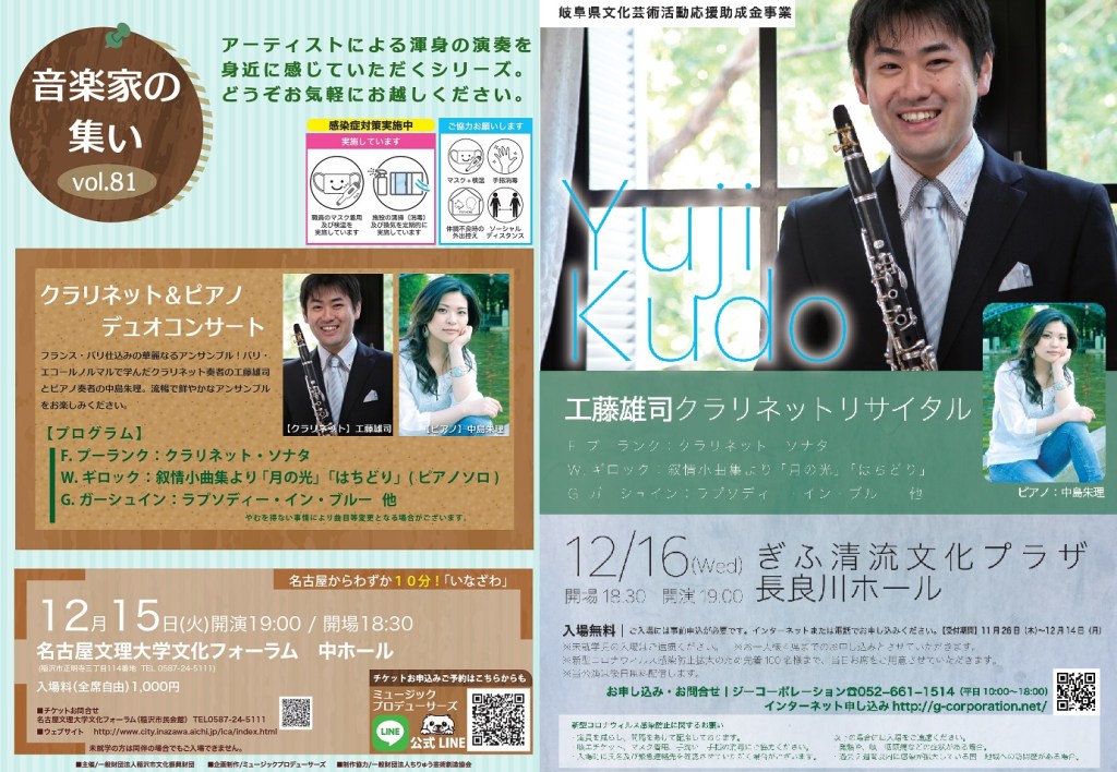 昨年と同じ「音楽家の集い」に出演することと、自主企画としてぎふ清流文化プラザでも演奏します。
