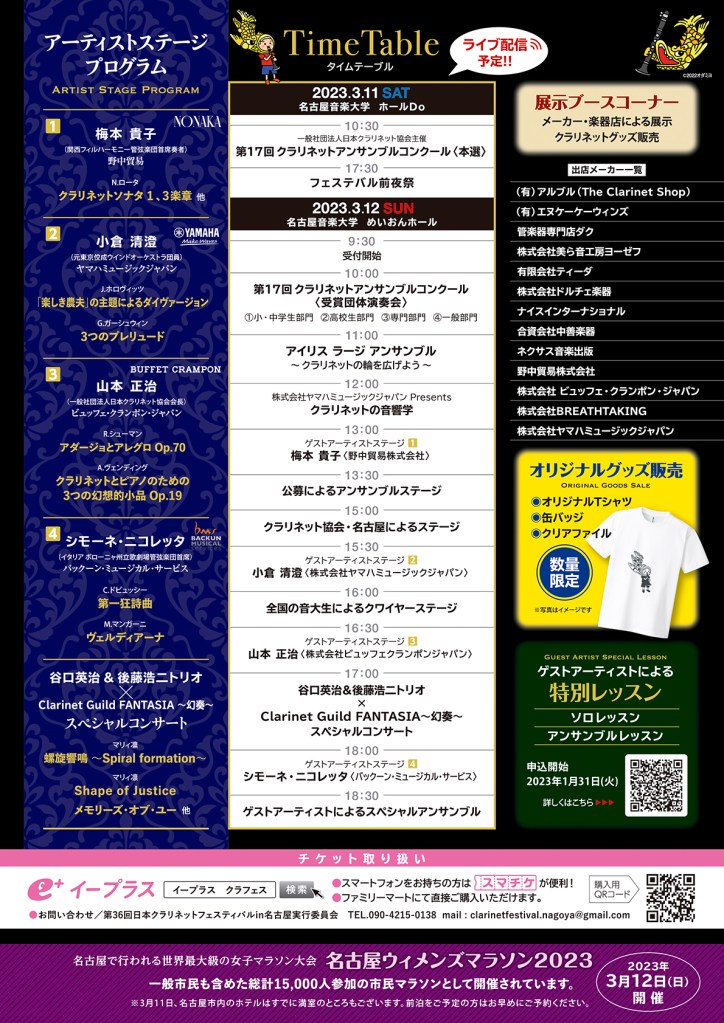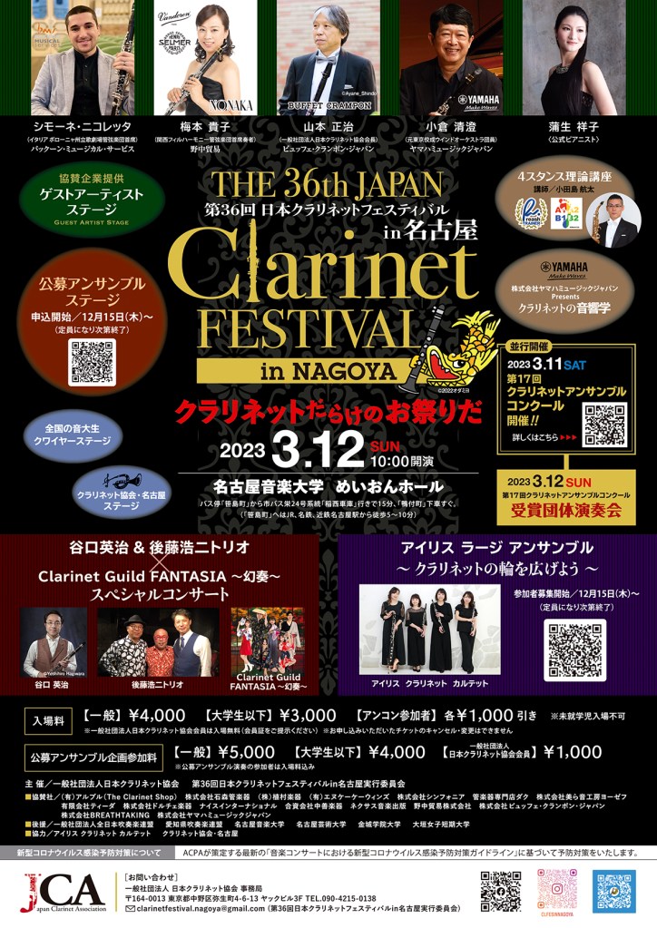 2023年3月12日(日)に日本クラリネット協会と第36回日本クラリネットフェスティバル in 名古屋実行委員会が主催した「第36回 日本クラリネットフェスティバル in 名古屋」は無事に終了しました!