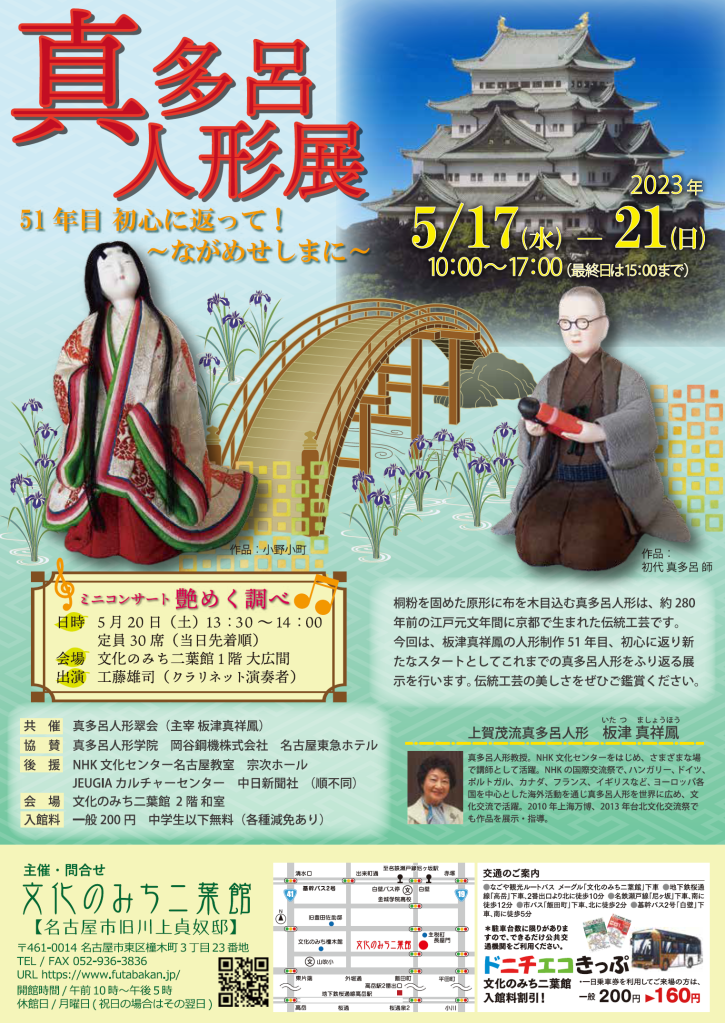 2023.5.20(土)に文化のみち 二葉館で開催される「真多呂人形展」のミニコンサートで演奏します!